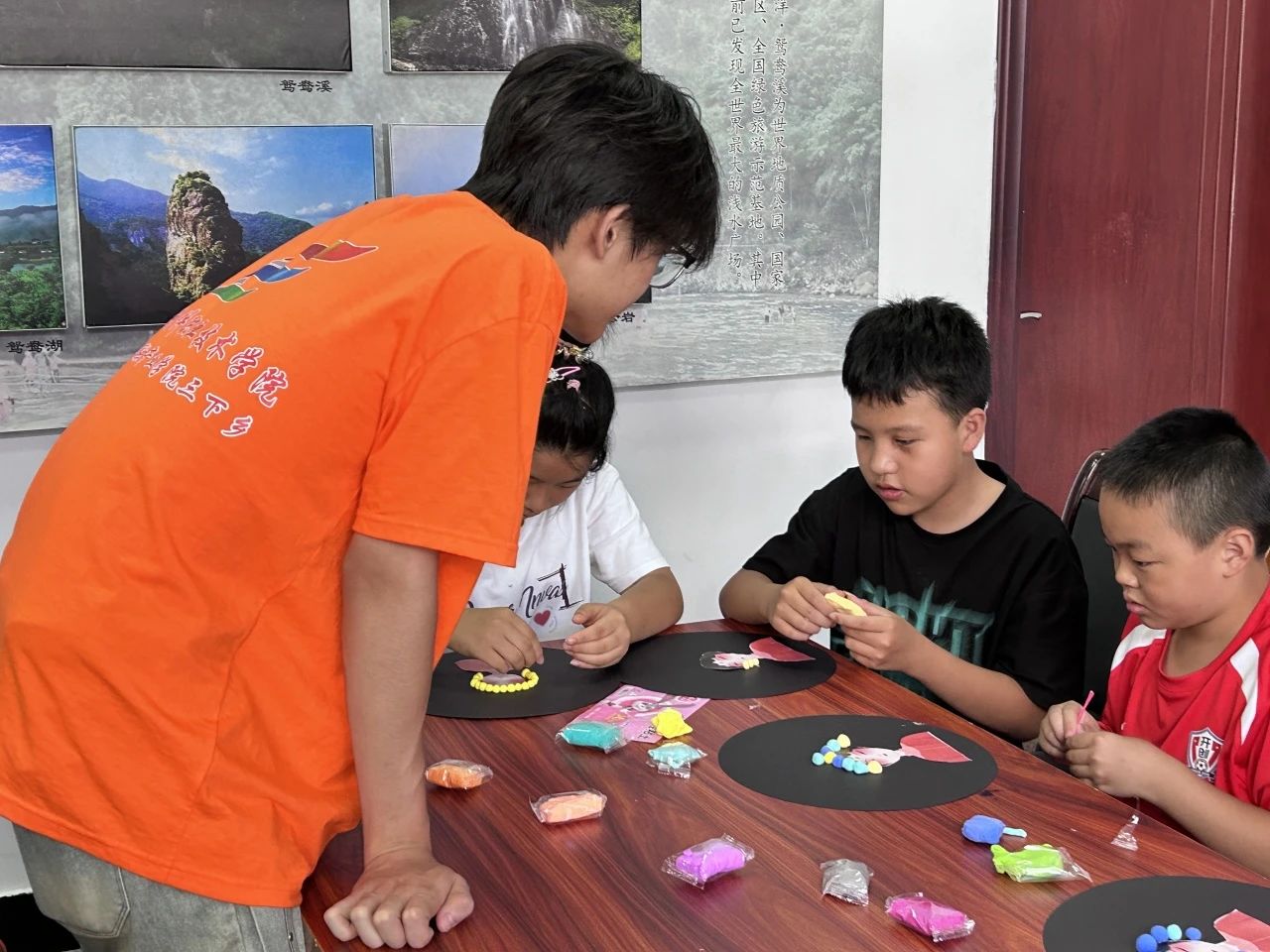 时序更替,万象更新;文脉赓续,生生不息。千年来,泱泱大国稳步前行,蓄积起厚重的文化底蕴。聆听完实践队员细说京剧林林总总的趣闻史事,例如生、旦、净、丑的行当之趣,小朋友们更加真切地领略到非遗文化的深邃与民族气韵的芬芳。一粘一贴传承非遗精神,一点一滴树立文化自信。在细腻入微的指尖舞蹈中,小朋友们巧妙地运用黏土,仿佛编织着历史与艺术的交织梦境。在实践队员耐心指导下,小朋友们以匠心独运的手法,将京剧头饰的繁复与精致展现得淋漓尽致。通过本次活动,小朋友们用黏土作笔,勾画出人物的情愫气韵,笔笔浓墨传递着对非遗文化的热爱之情。