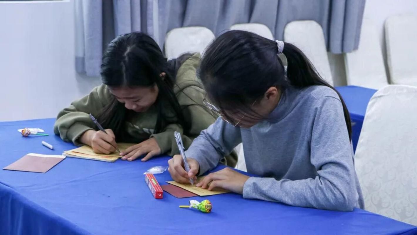 志愿者为每位参与学生分发专属信封信纸,同学们纷纷提笔写下对历史的深刻感悟、对和平的真挚期许,或是对未来的责任与承诺,以笔墨传递对和平的珍视,以文字定格对历史的铭记。