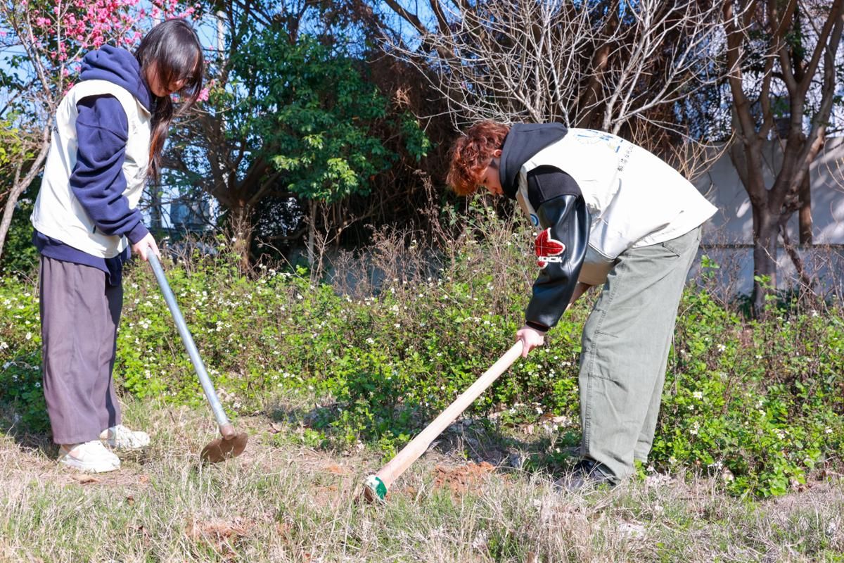 经过一上午的辛勤劳作,一株株新苗在空地上整齐排列、迎风而立,为原本空旷的土地增添了盎然绿意。看着亲手栽下的树苗,同学们纷纷掏出手机合影留念,也有人相约来年春天再回此地,见证今日的劳动成果。