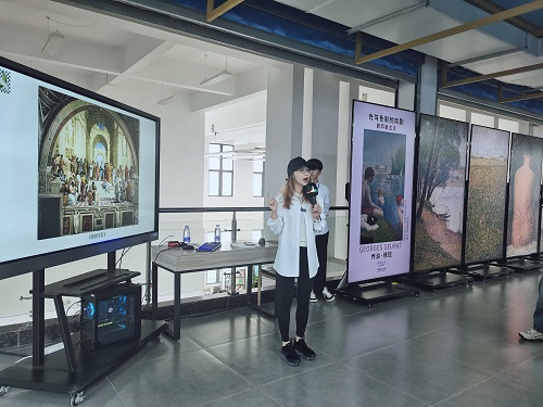 本场讲座主题为《禁止“蕉绿”》,旨在探讨AI技术对艺术创作的影响,以及如何在人工智能的浪潮下保持艺术家的独立思考与创新精神。刘薇女士以其深厚的美学底蕴和丰富的行业经验,带领听众穿越时空,从拉斐尔的经典之美到安迪·沃霍尔的波普艺术,再到现代AI艺术的无限可能。深入剖析了传统艺术与现代科技结合的现状与未来趋势,探讨了艺术家如何在AI辅助创作的背景下保持原创性和艺术的纯粹性。讲座现场气氛热烈。刘薇女士生动的讲解配合精心准备的视觉资料,引发现场观众的阵阵掌声。互动环节中,现场的学生积极提问,刘薇女士耐心解答,激发了一场场思想碰撞的火花。