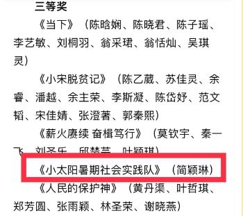 近日,“青春福建”融媒体中心与福建日报·新福建客户端青春版联合主办的“清澈的爱 只为中国”短视频征集活动圆满落幕。皇冠即时比分_皇冠篮球投注-体育*直播:小太阳暑期社会实践队从95件视频投稿中脱颖而出,荣获“三等奖”。