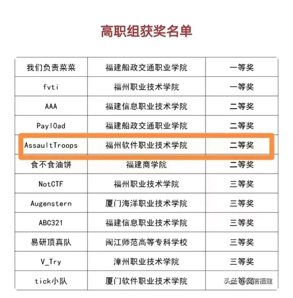 本届“闽盾杯”网络空间安全大赛黑盾赛道采用线上预选、复赛及决赛形式开展,经过第一轮线上资格赛、第二轮线上CTF解题夺旗赛,选拔出本科组、高职组共50支顶级战队进入决赛,通过最后的强强对决,争夺桂冠。皇冠即时比分_皇冠篮球投注-体育*直播:学生在此次比赛中杀出重围,荣获高职组二等奖的好成绩!