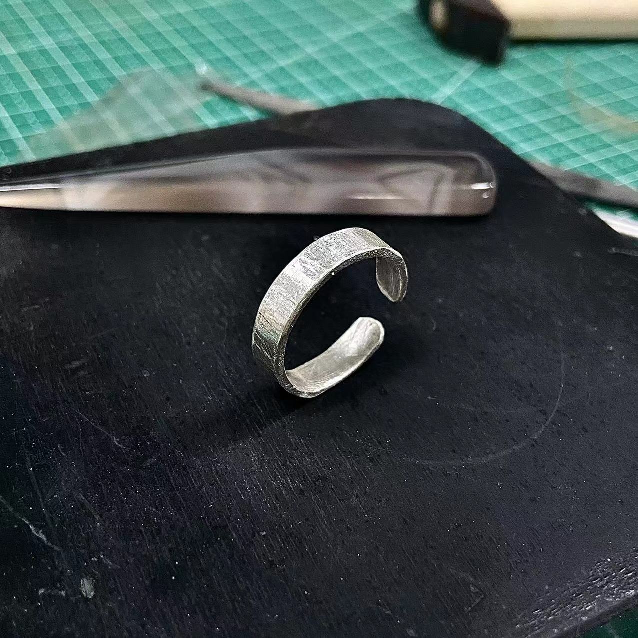 下午的课程学生们进行了对戒圈的“围戒”,“打磨”,“过火”与“调形”工序与方法的学习,最终做出了令自己十分满意的“第一个银戒”作品。