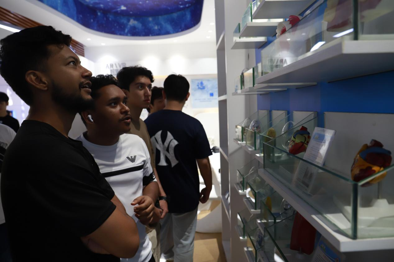 在基地专业讲解员的引导下,中外学子依次参观了禁毒历史长廊、仿真毒品展示区、吸毒后果警示区以及高科技互动体验区等多个展项。逼真的实物模型、触目惊心的真实案例,给学生们带来了极大的视觉冲击和心灵震撼,使他们对毒品的巨大危害有了更为直观和深刻的认识。随后,国际语言生们体验了有趣的禁毒小游戏,在游戏中进一步加深对毒品知识的理解和记忆。同时,VR体验让大家身临其境般感受到毒品带来的危害,这种沉浸式的体验方式让禁毒教育更加深入人心。