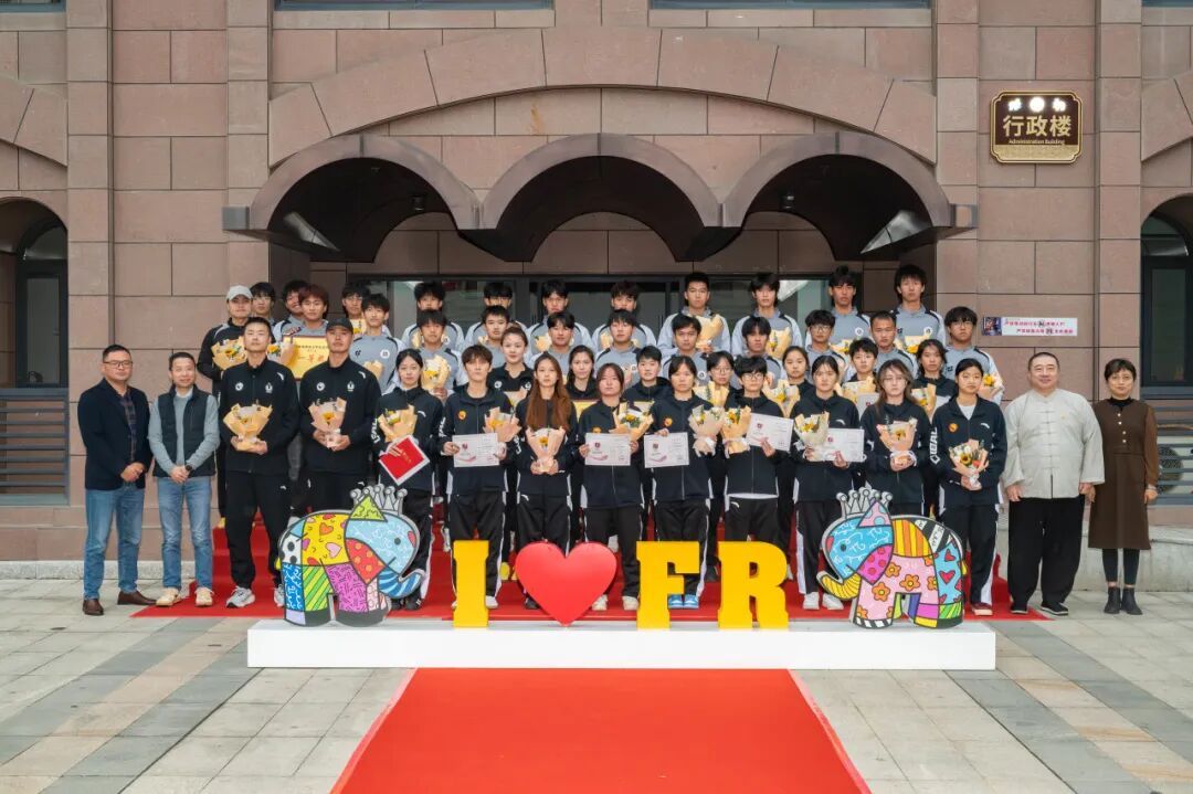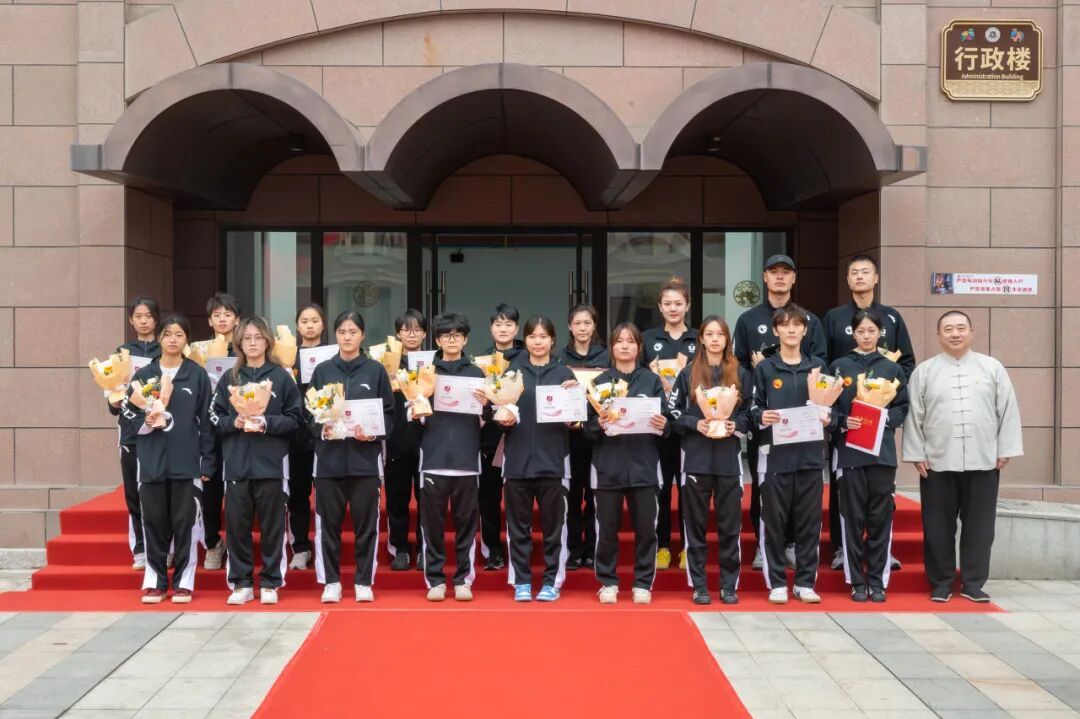 学校理事长俞飚、常务副书记林莺、副校长王秋宏、校长助理柯建琳亲临现场,与百余名师生代表共同见证这一荣耀时刻。俞飚理事长亲手为两支队伍的教练及队员逐一颁赠鲜花,向他们致以最诚挚的祝贺。“你们的刻苦训练、奋力拼搏,全校师生都看在眼里、记在心里!”理事长充分肯定了队员们的付出,更寄予了续写荣誉、再创佳绩的殷切期望。仪式尾声,校领导与全体队员合影留念,将这份属于校园的共同荣耀永久定格。