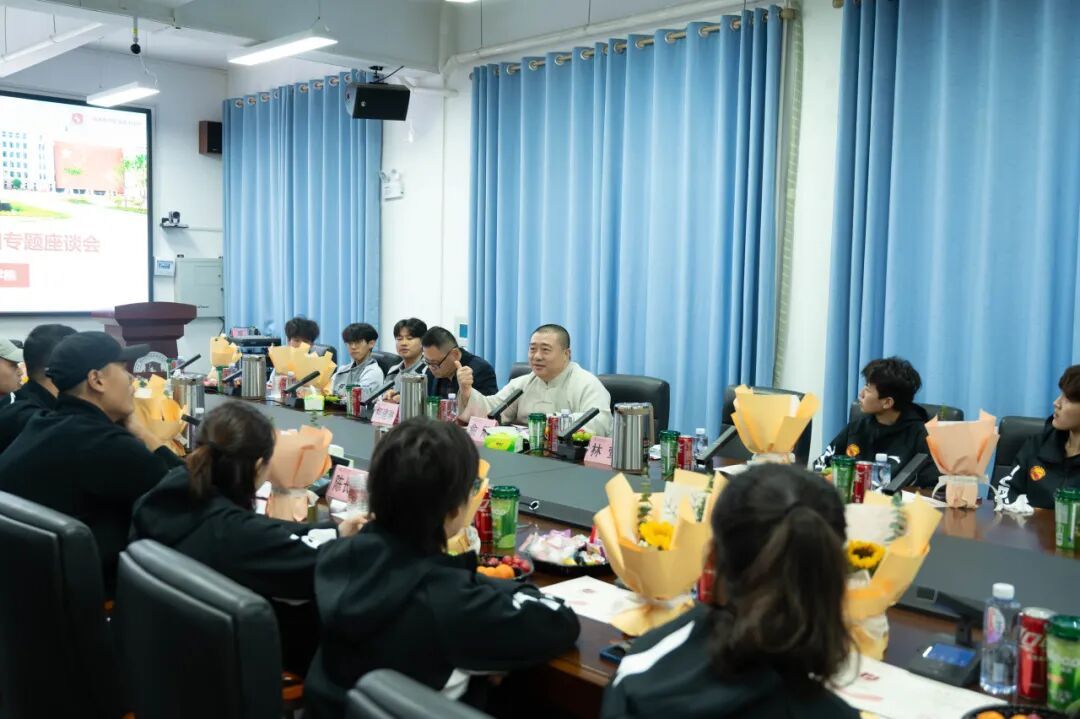 欢迎仪式后,专题座谈会在行政楼 208 会议室召开,由校长助理柯建琳主持。会上,教练与队员代表们分享心声,畅谈感悟,现场氛围温馨而热烈。