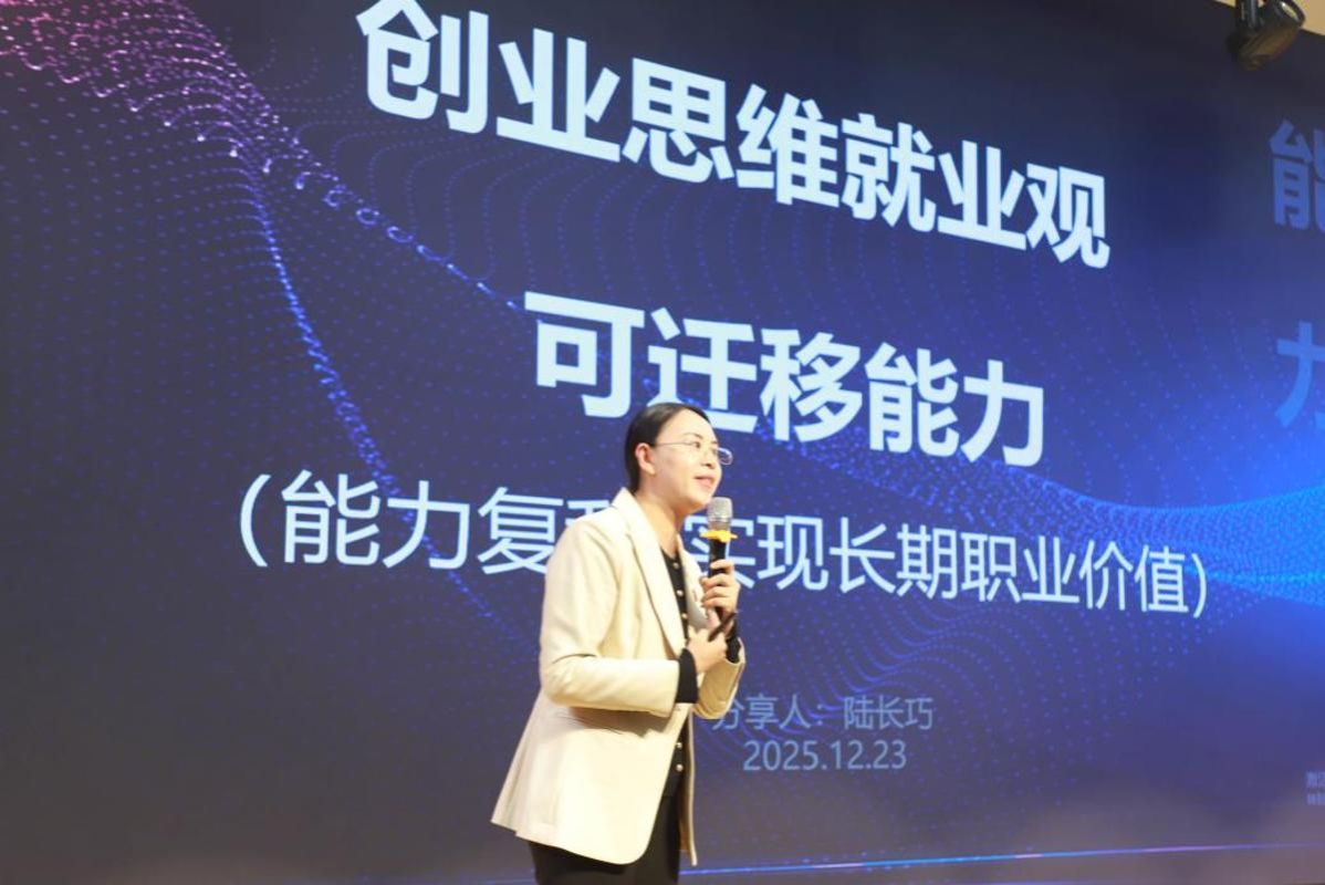 福州市贝纳职业培训学校校长陆长巧则聚焦应届生就业创业痛点,以“在不确定中寻找确定性”为核心主旨,引导青年学子树立科学职业观,在职业选择与发展中践行工匠精神。嘉宾们的分享既有专业深度,又有情感温度,为现场师生带来了深刻启发。