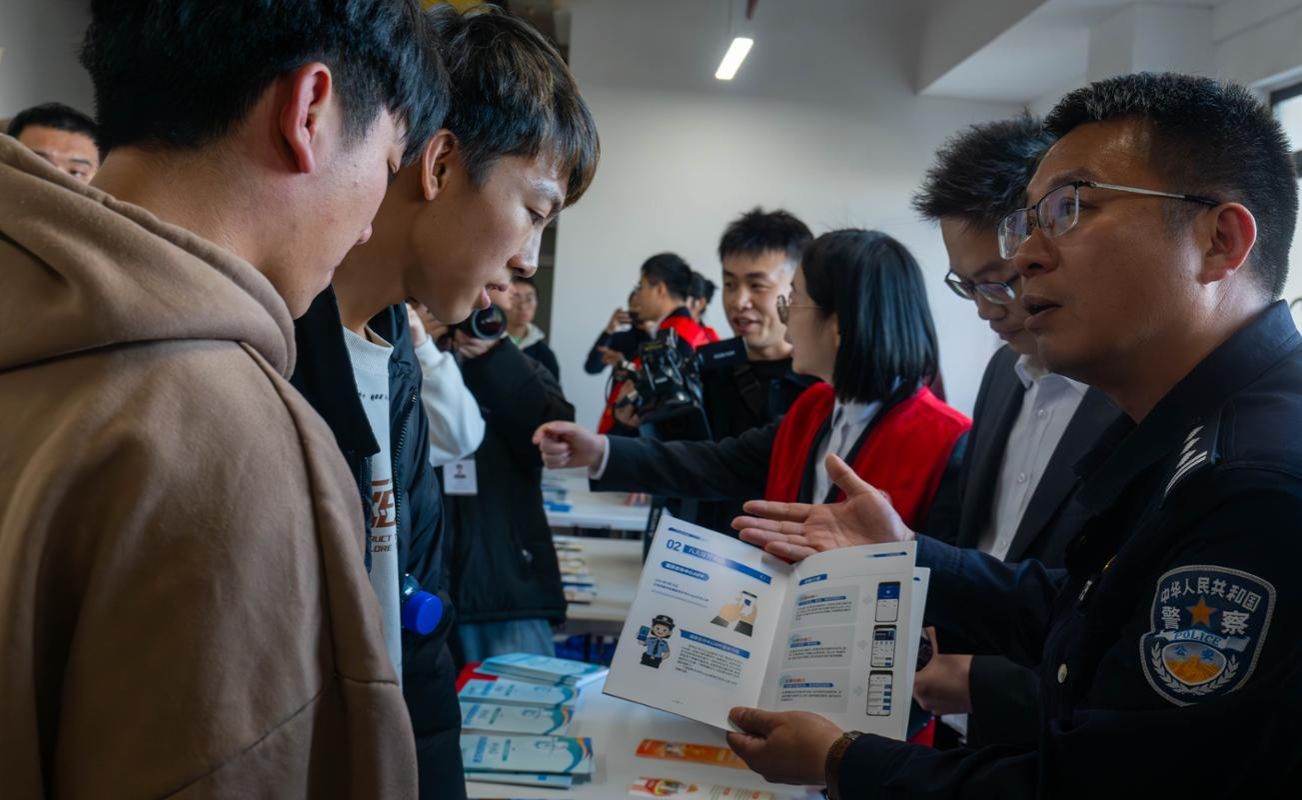 汇演结束后,活动延伸至现场宣传摊位环节。福州市公安局长乐分局、中国银行长乐支行、工商银行长乐支行与长乐农商银行文岭支行分别设立宣传点,为师生提供面对面的反诈咨询与警示教育。各单位工作人员向同学们分发《防范电信网络诈骗宣传手册》《警惕非法代理维权风险提示》等金融反诈资料,结合真实案例讲解近期高发的诈骗类型与防范技巧,引导大家树立正确的金融安全意识。摊位前师生络绎不绝,互动交流积极,形成了“台上生动演绎、台下深度解惑”的全方位宣传氛围,进一步提升了反诈宣传的覆盖面和实效性。