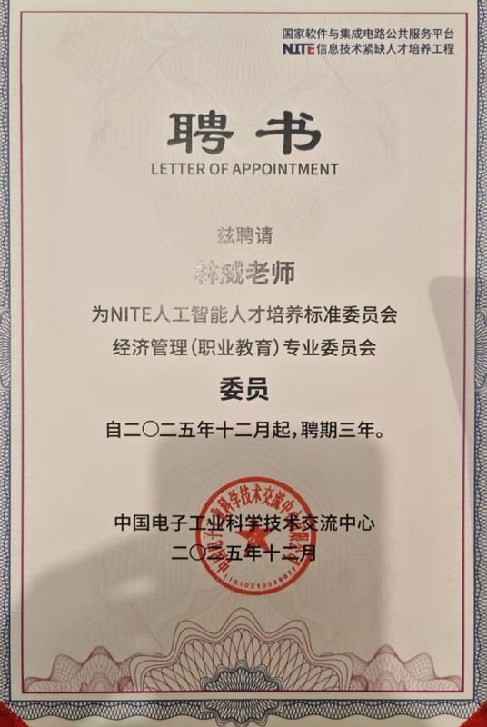 林威老师长期深耕网络直播与运营专业教学与研究,在人工智能赋能职业教育教学改革、数字经济领域人才培养等方面有着深入探索。此次获聘后,她将充分发挥专业优势,积极履职尽责,为推动经济管理类职业教育与人工智能技术的深度融合贡献高校智慧与力量。