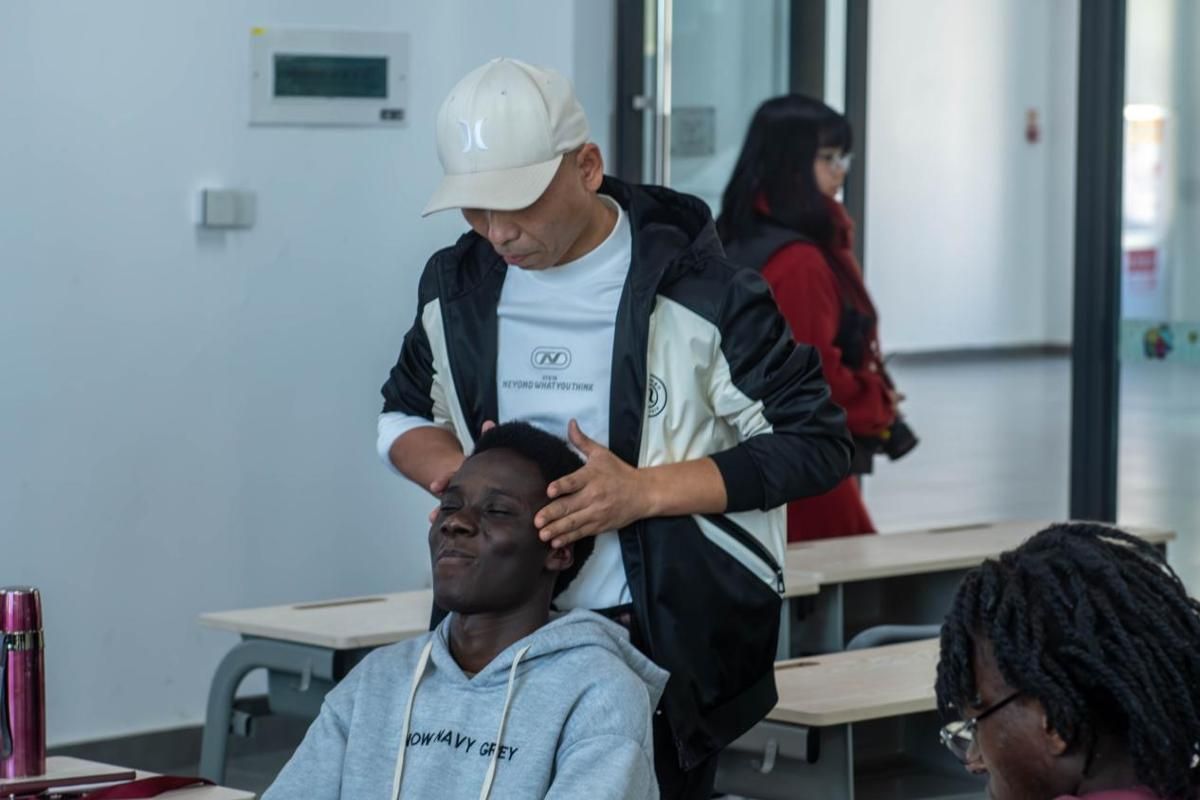课程中,卢晓艳老师现场进行技艺讲解与展示,精湛规范的操作,让福软国际生近距离感受中医魅力、工匠精神与专业技艺。