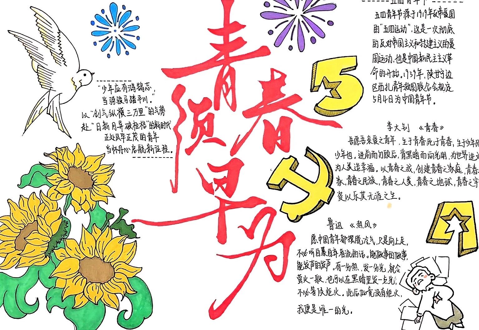一、“赓续五四薪火,续写青春华章”手抄报活动