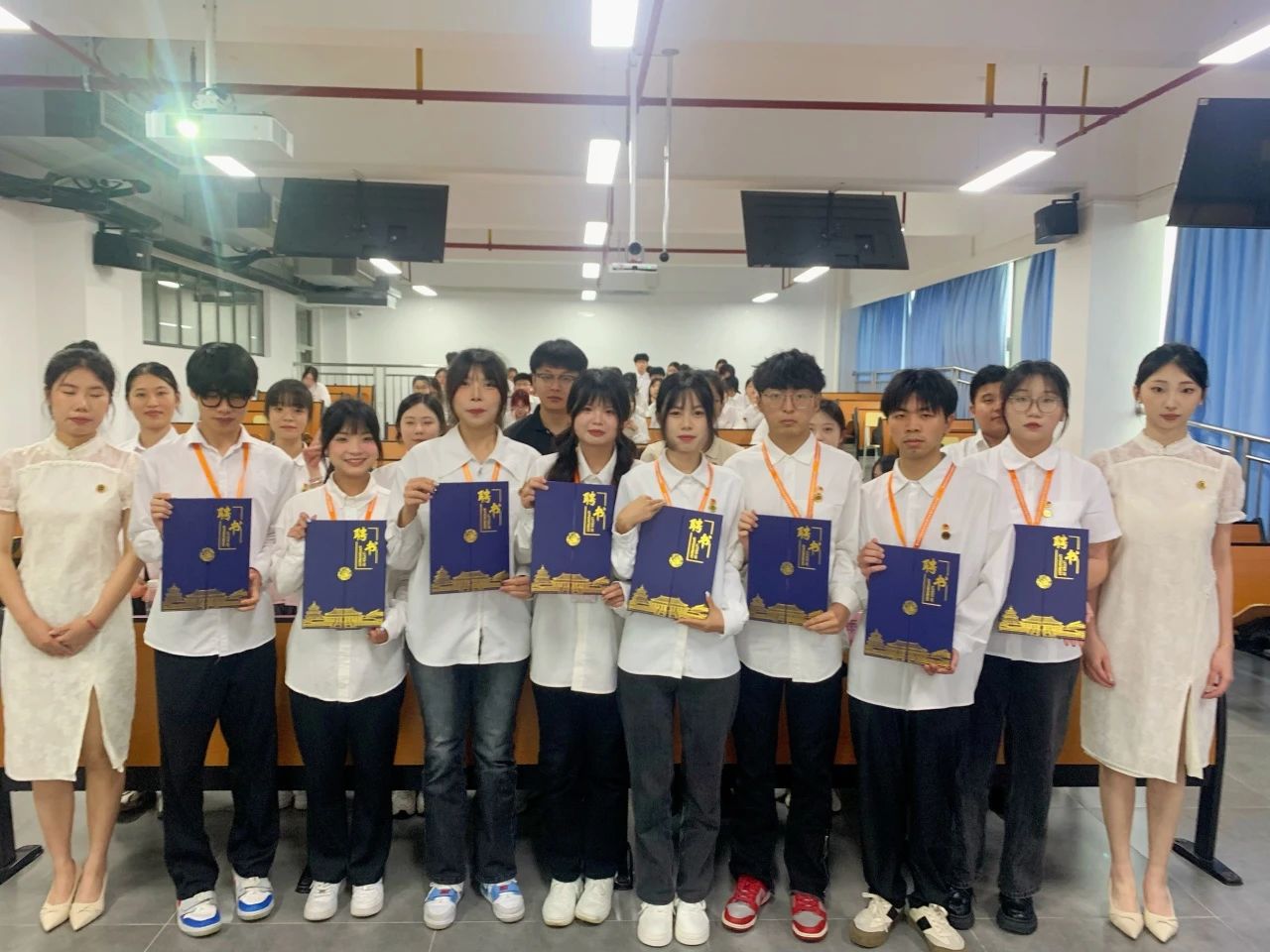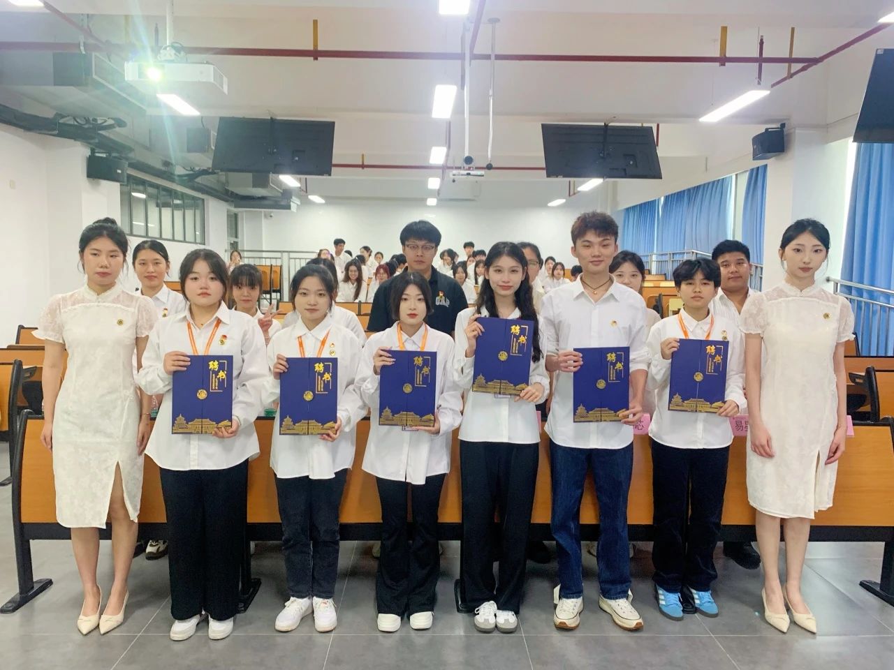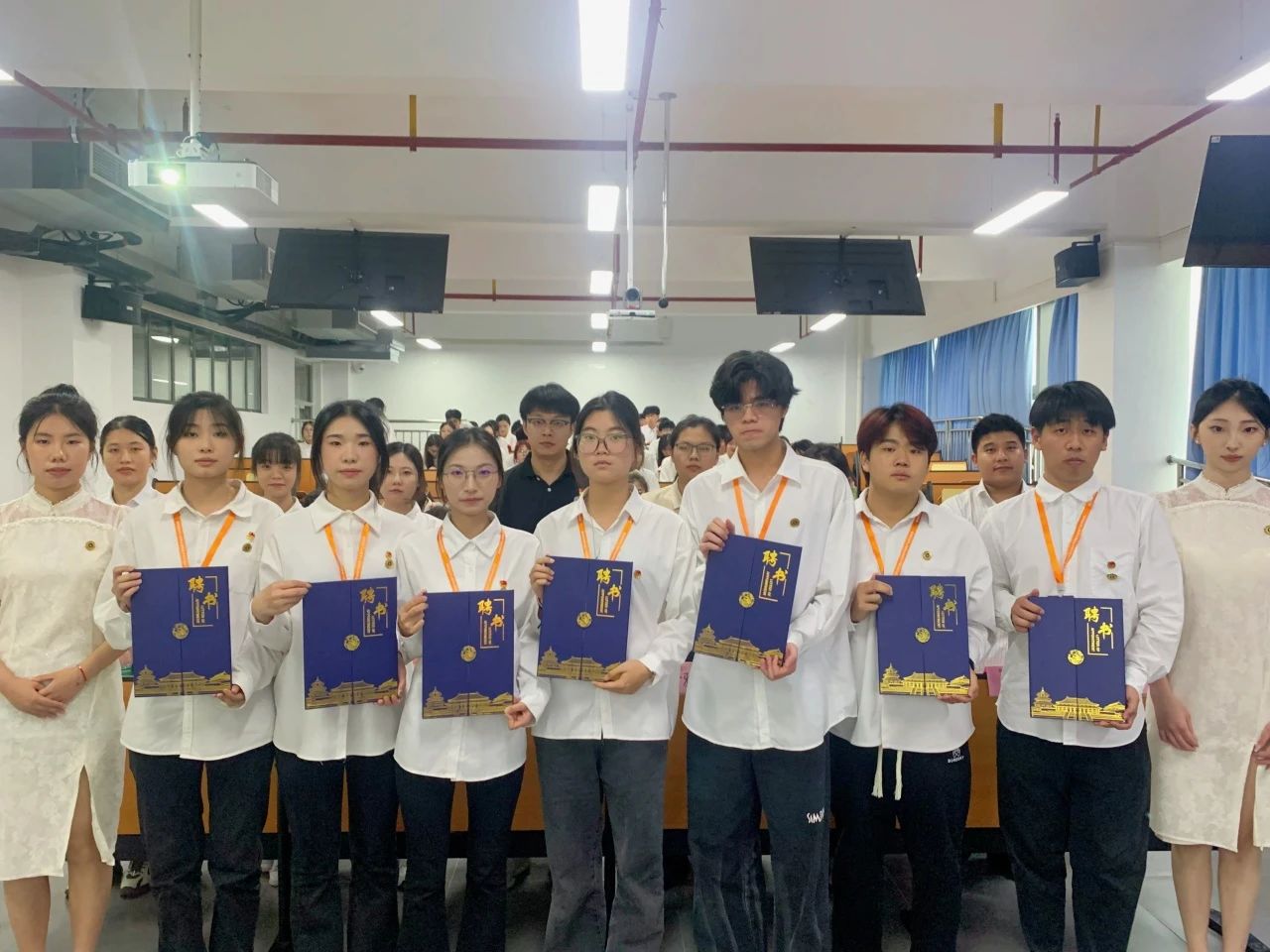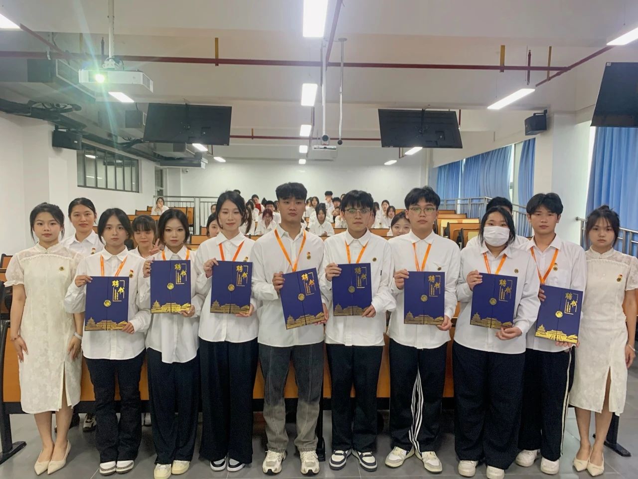 与会的各位领导老师为上一届团学干部颁发聘书,各团学干部依次进场接过任职聘书并合影留念。学院各团学组织坚持在继承中发展,在创新中前行,立足于服务同学、促进校园和谐发展的宗旨,为学院发展贡献力量。