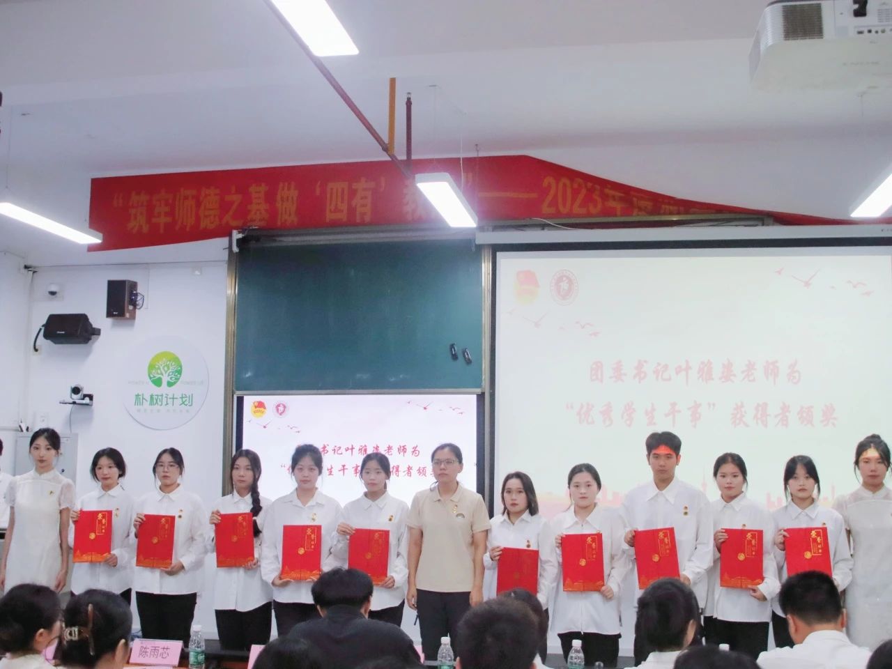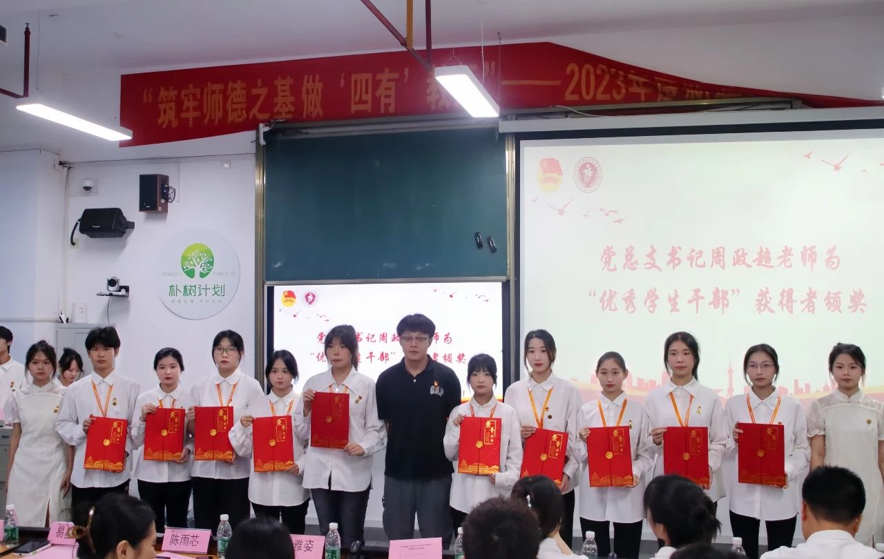 团委指导老师林宗增宣读数字金融产业学院2023年度“优秀学生干部”“优秀学生干事”表彰名单,党总支书记周政超老师与团委书记叶雅姿老师分别为获奖学生颁发荣誉证书,感谢各位同学在这一年来对学院各项团学工作的支持与付出。