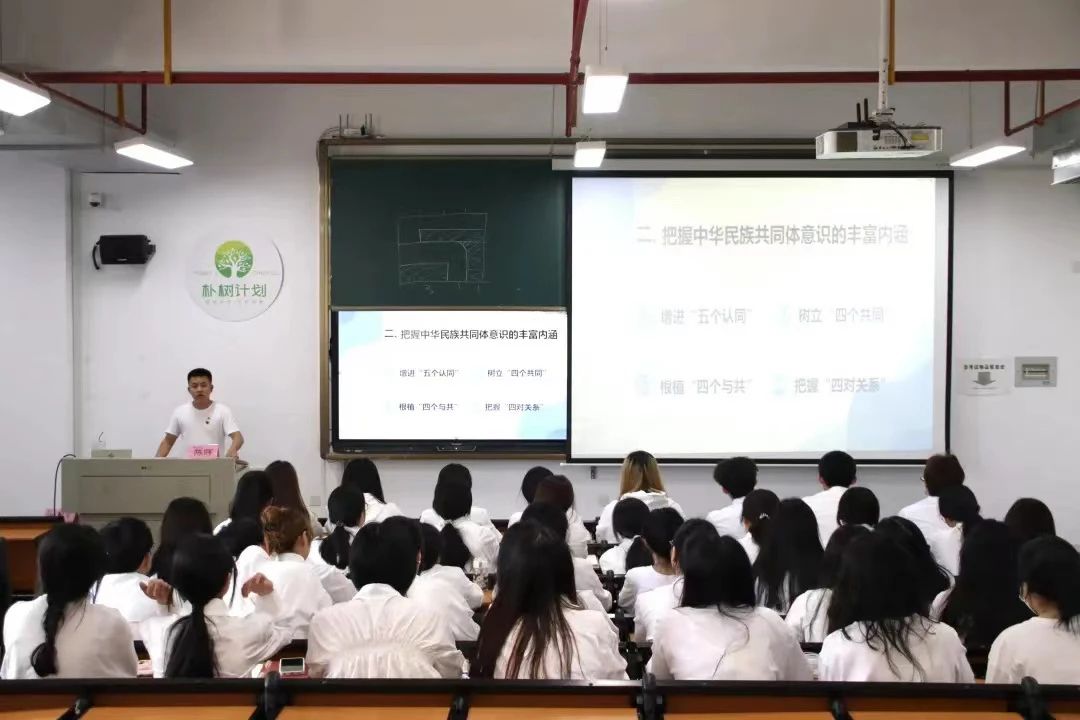 为深入学习贯彻习近平总书记皇冠即时比分:加强和改进民族工作的重要思想,紧扣铸牢中华民族共同体意识主线,增强民族文化认同感、自豪感。数字金融产业学院于4月12日在教学楼A507举办2023-2024学年第二学期入团积极分子培训班第三讲,本次课程由陈晖老师以《铸牢中华民族共同体意识》为主题向学员们进行授课。