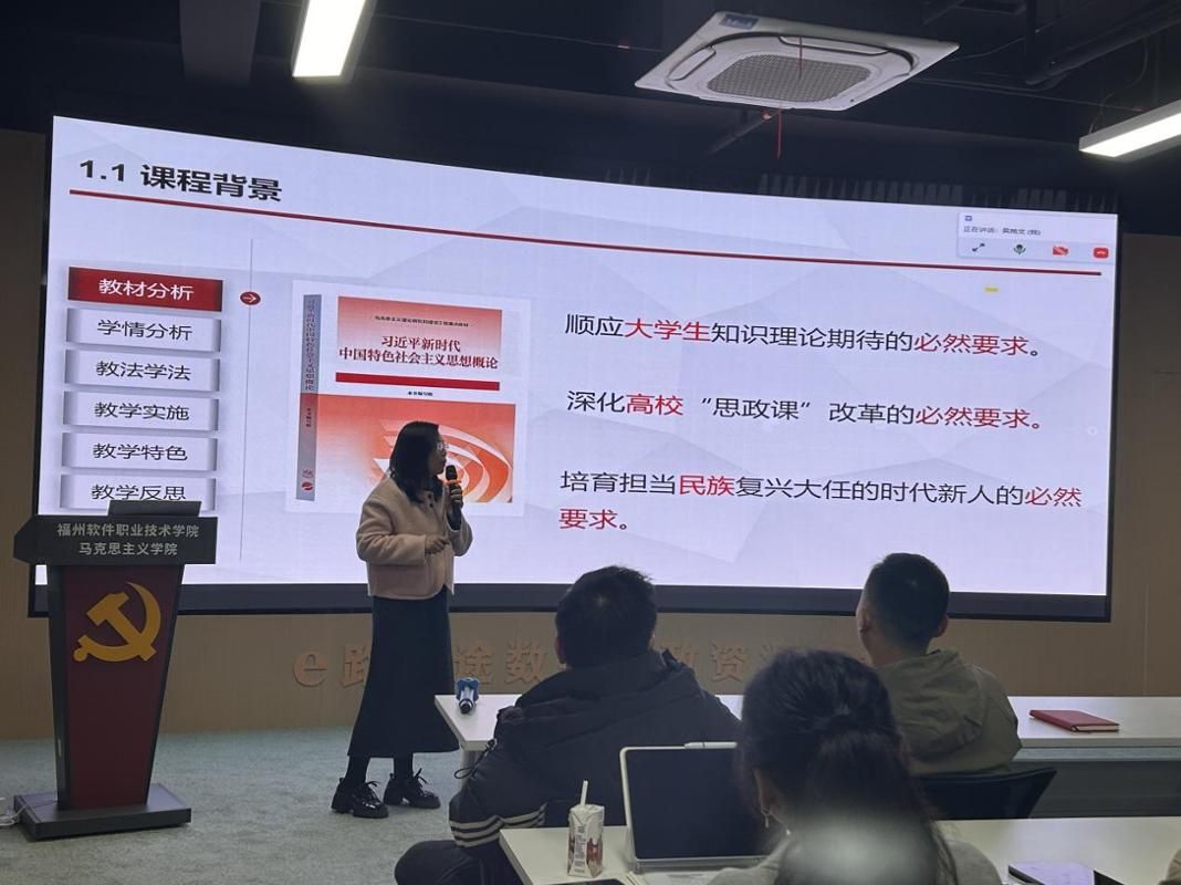 集体备课环节,首先《习近平新时代中国特色社会主义思想概论》教研室主任陈彩虹对课程进行了整体说课,梳理了课程逻辑与教学思路。《习近平新时代中国特色社会主义思想概论》教研室教师薛小英、霍路娇,《形势与政策》教研室教师颜小云、林泽霖分别进行授课专题片段教学展示,各课程教研室主任围绕课程目标、内容逻辑、教学方法与预期效果等方面,对片段教学展示进行了系统梳理与多维点评。通过提炼共性建议、分享教学经验,有效促进了教师间的互学互鉴,为优化课堂教学奠定了坚实基础。