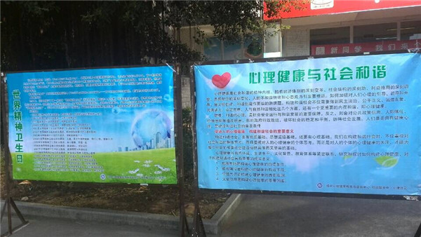 为了加强和改进大学生心理健康教育工作,提高全院师生对心理健康教育的重视,在第23届“世界精神卫生日”来临之际,学院心理健康教育与咨询中心带领心理健康协会举办以“心理健康,社会和谐”为主题的心理宣传活动。活动于20141010在生活区门口悬挂横幅与心理知识宣传活动中拉开帷幕。