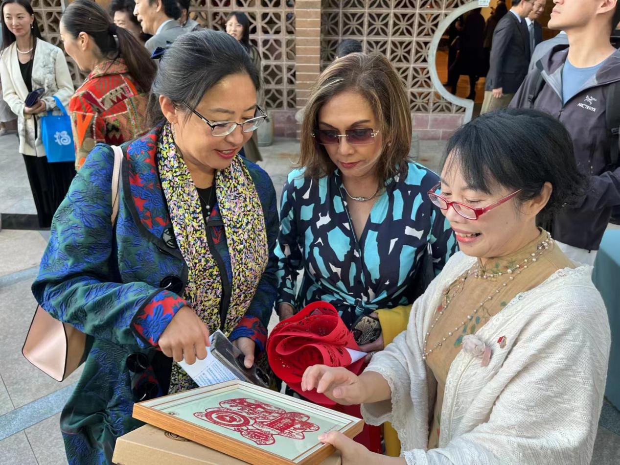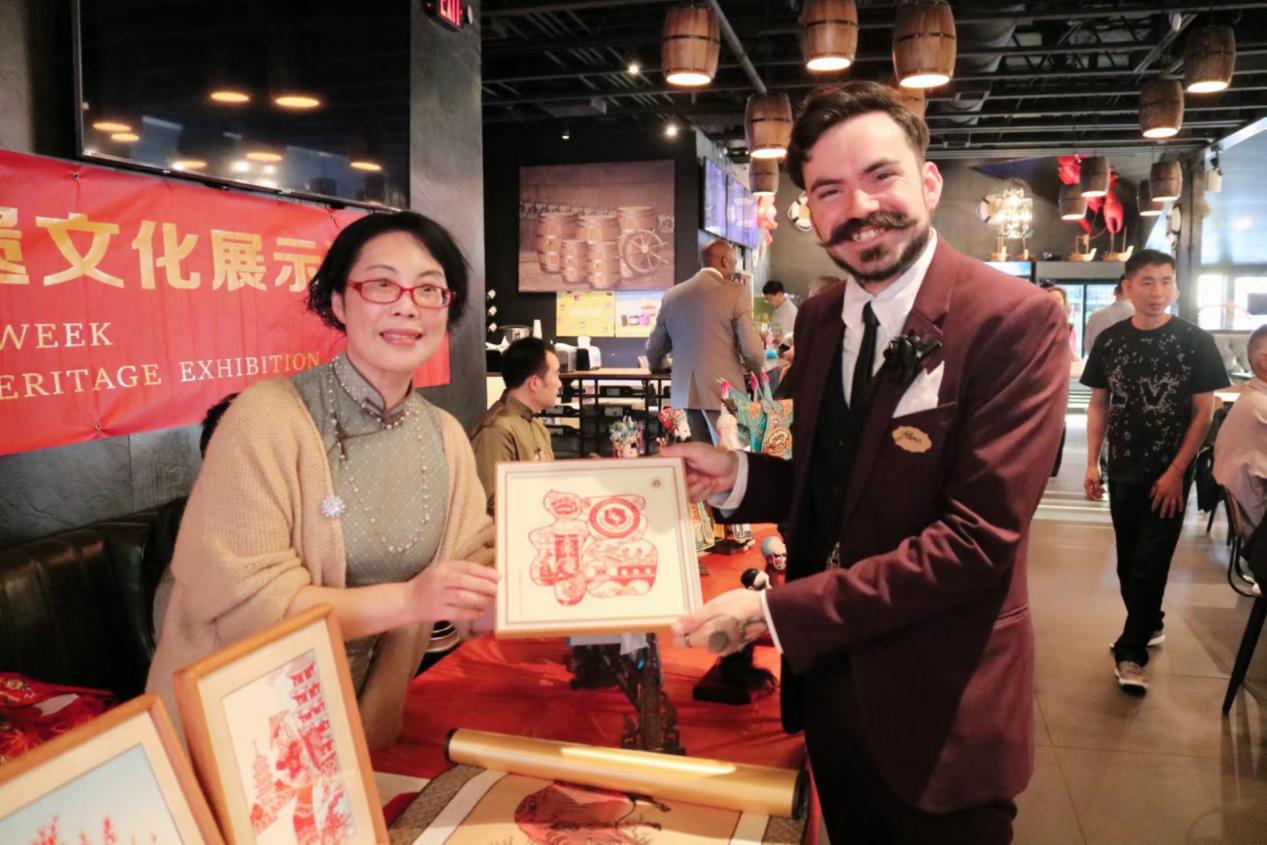 在中国福建周非遗文化展示活动期间,孔春霞还走进当地社区和校园,现场展示教授剪纸技艺,手把手教学,让美国民众零距离体验,感受中国传统剪纸艺术的魅力,传播中国优秀传统文化。