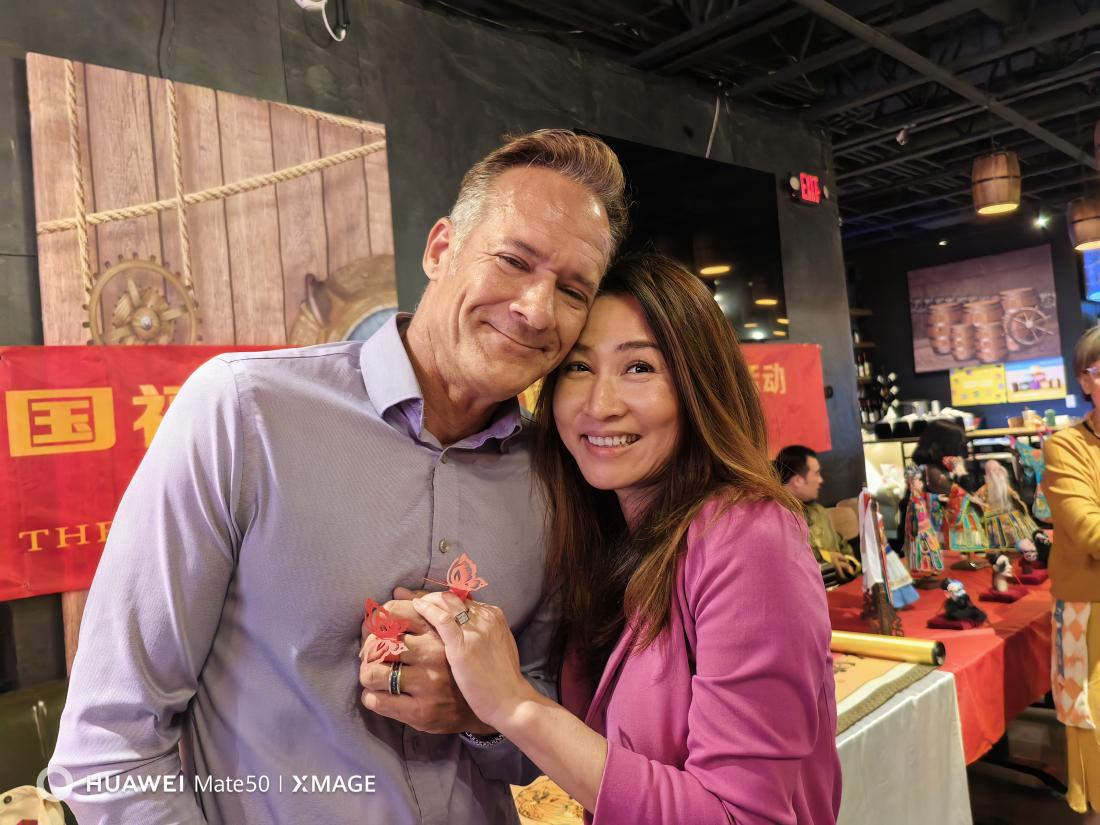 现场剪制蝴蝶送给Saratoga市副市长、市议会议员趙嬿(Yan Zhao)