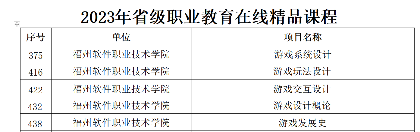 《游戏发展史》《游戏设计概论》《游戏系统设计》《游戏玩法设计》《游戏交互设计》5门课程入选省级职业教育在线精品课程;